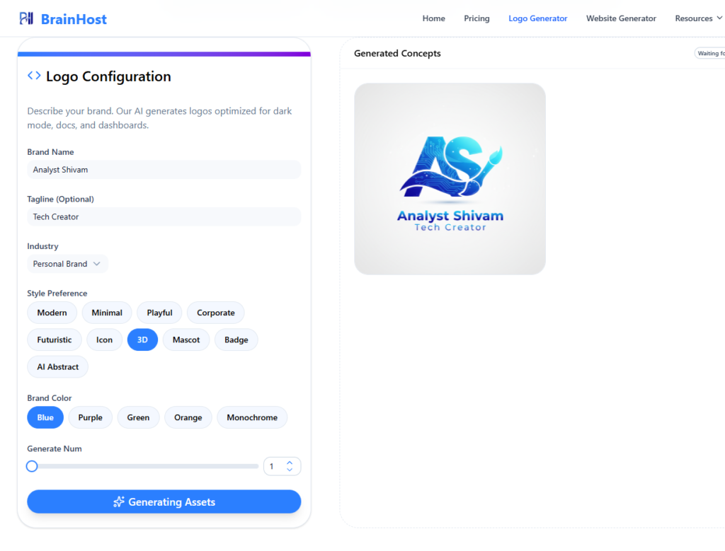 BrainHost AI Logo Generator: Create a Free Logo in Seconds (No Sign-Up Required)